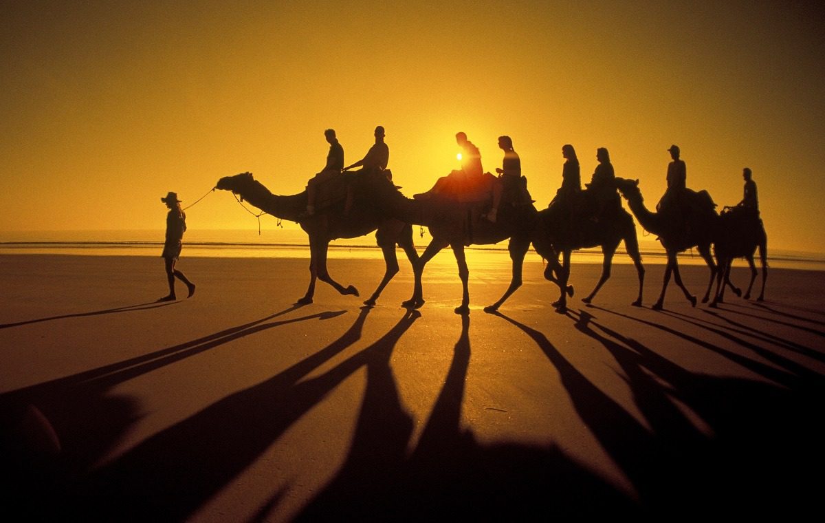 Broome is famous for Cable Beach – all 22 kilometres of it. This is undoubtedly one of the world’s most stunning beaches – a pure white band bordering a brilliant blue ocean. Just the place for lazy days and sunset camel rides.